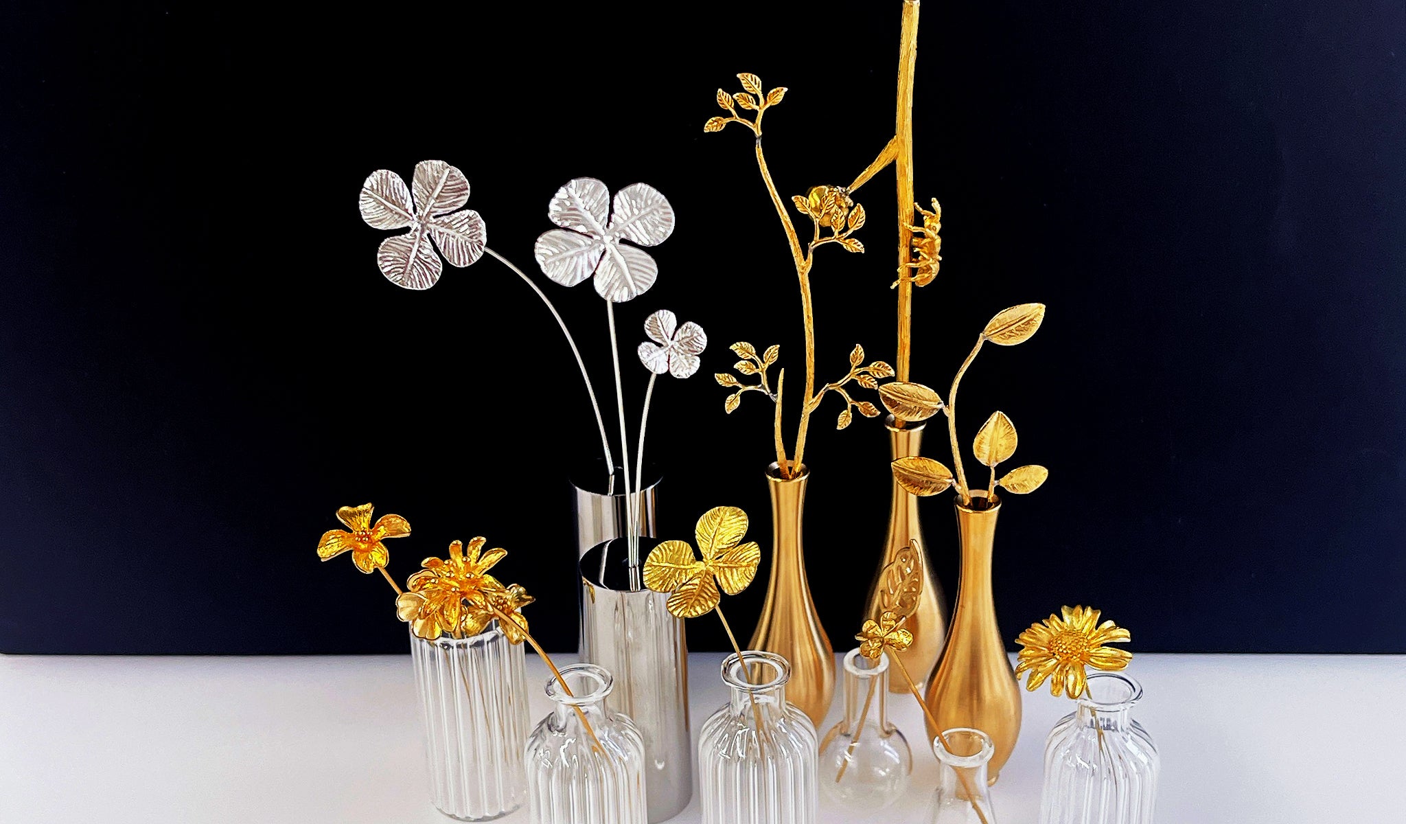 「En(エン)」は、自然との縁(えん)をテーマに、しなやかな枝と艶やかな真鍮の花器が調和するコレクション。 日本の美意識である“余白の美”を映し出し、和洋を問わずあらゆる空間にしっとりと馴染む静かな存在感を放ちます。