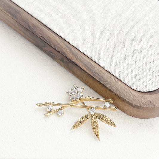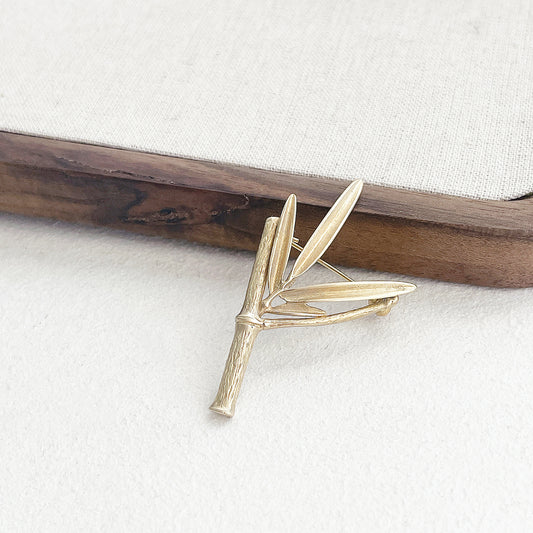 凛とした美しさ 竹の葉の真鍮ブローチ vbr10