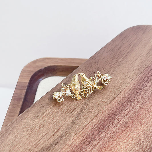 寄り添う心 つがいの小鳥と木の実のブローチ vbr13