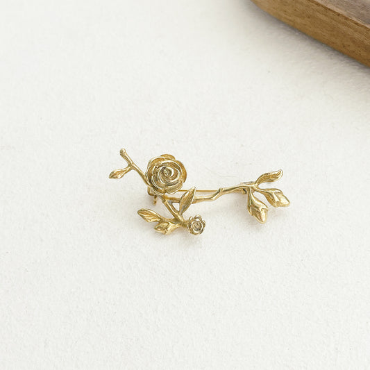 可憐に咲く、つぼみのある バラの一枝ブローチ vbr5