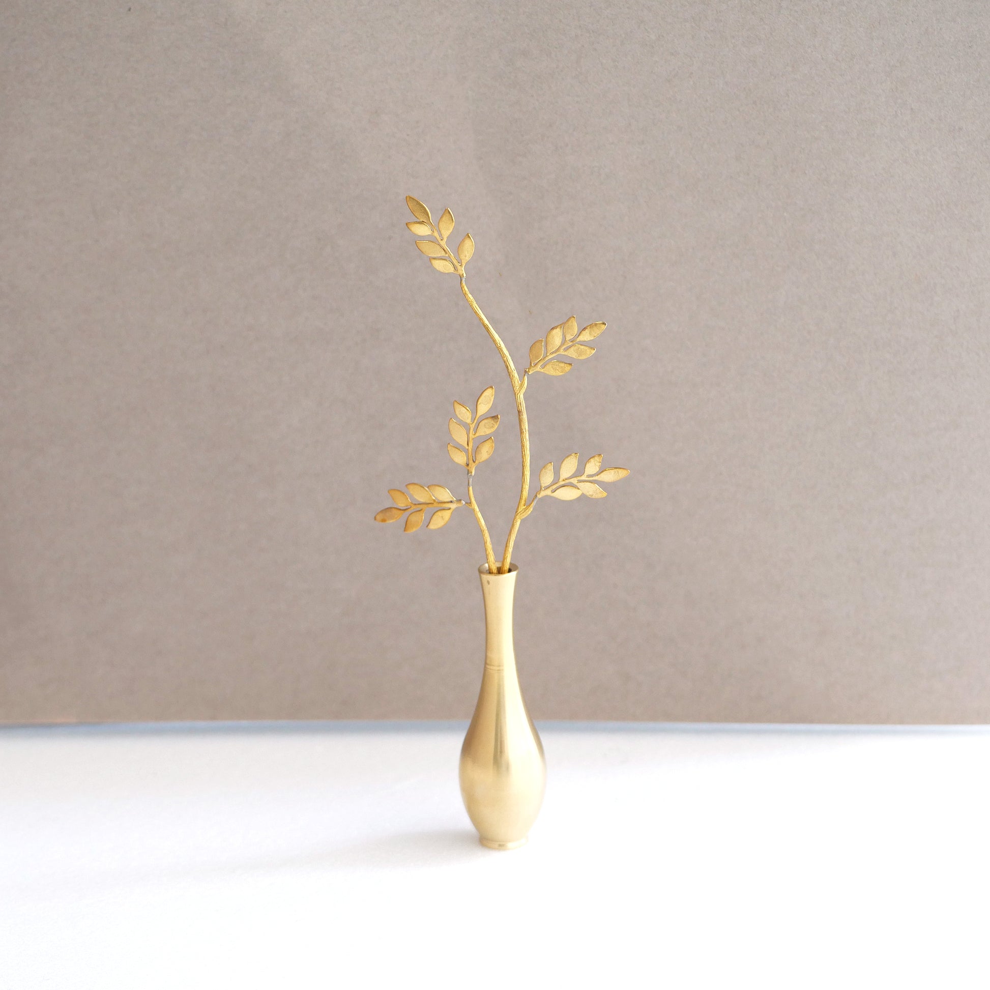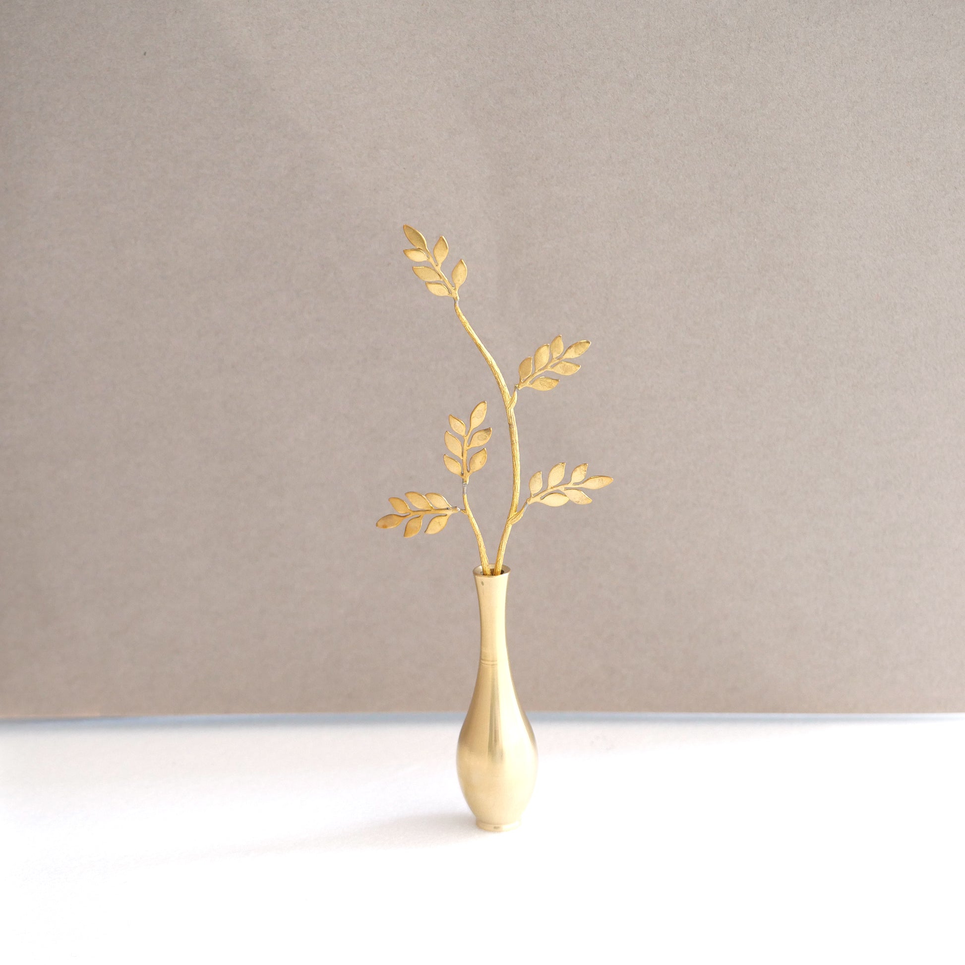 無垢の真鍮を用い、時間の経過とともに深みを増す風合いを楽しめる花瓶。 光をやわらかく反射する滑らかな表面は、素材そのものの美しさを引き出しています。 手のひらに収まる小ぶりなサイズで、デスクや棚、玄関などの小さな空間にも調和します。