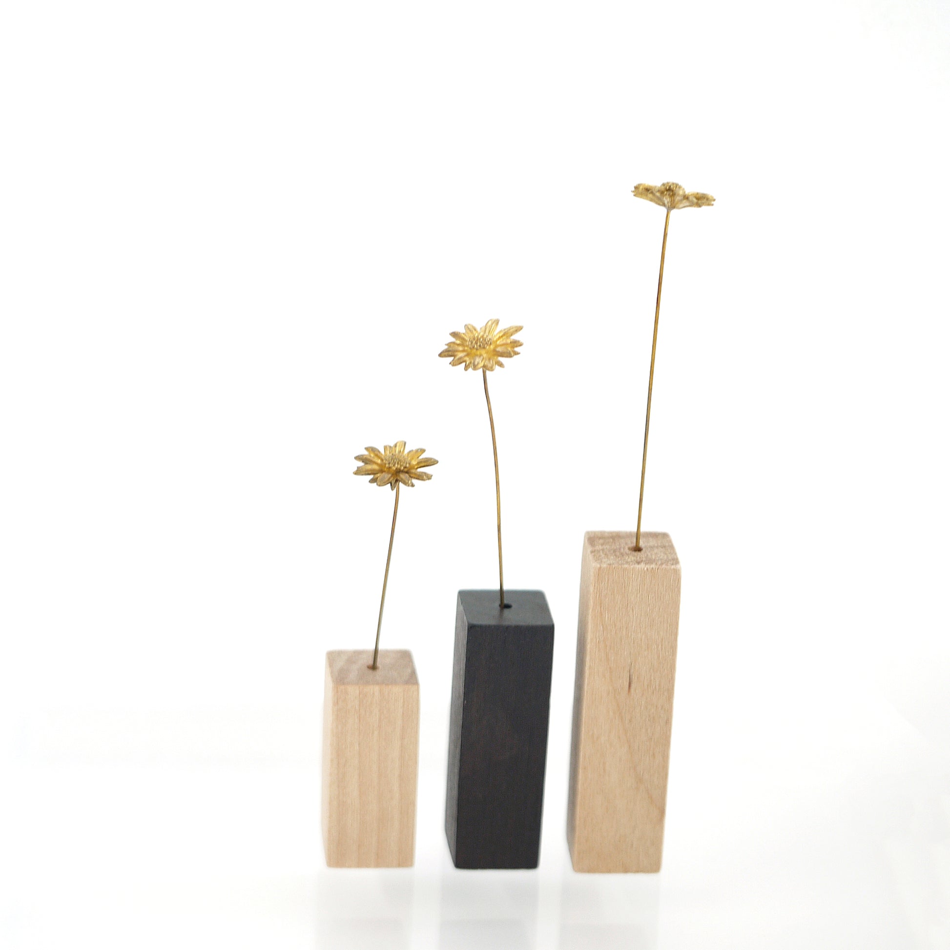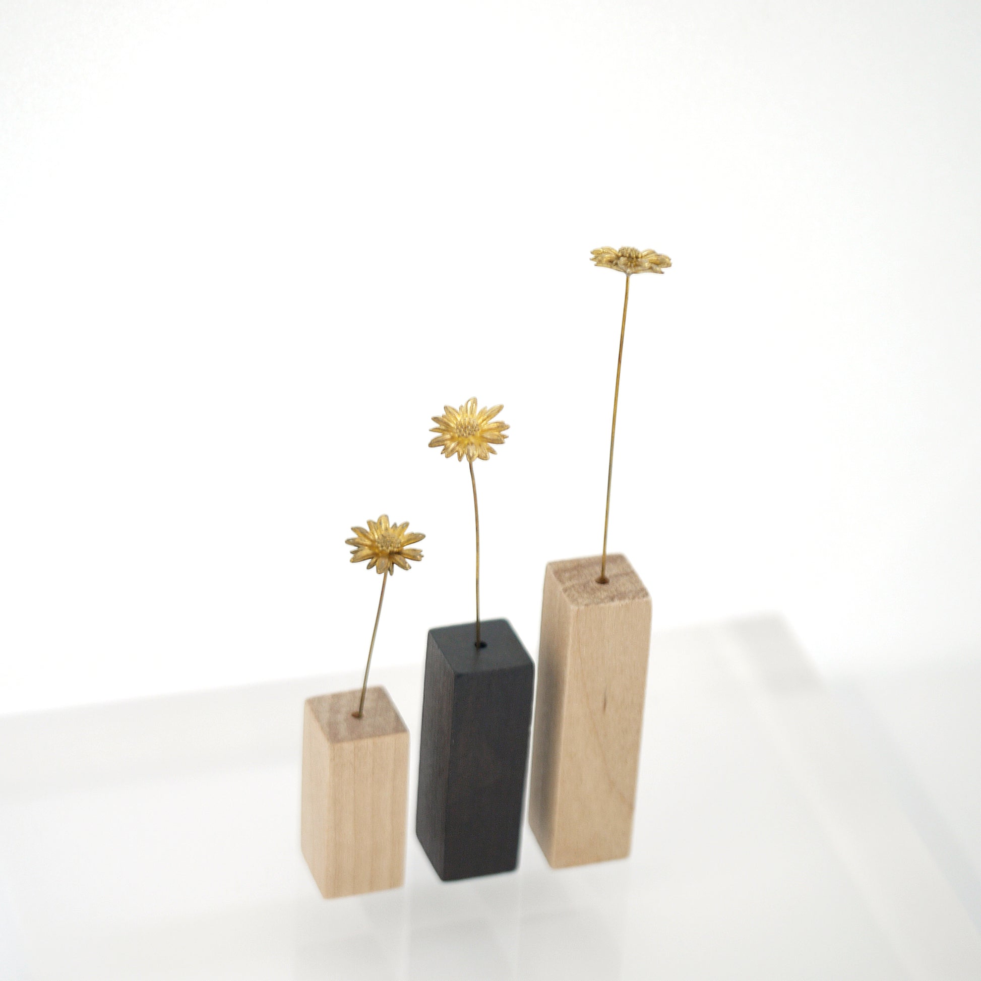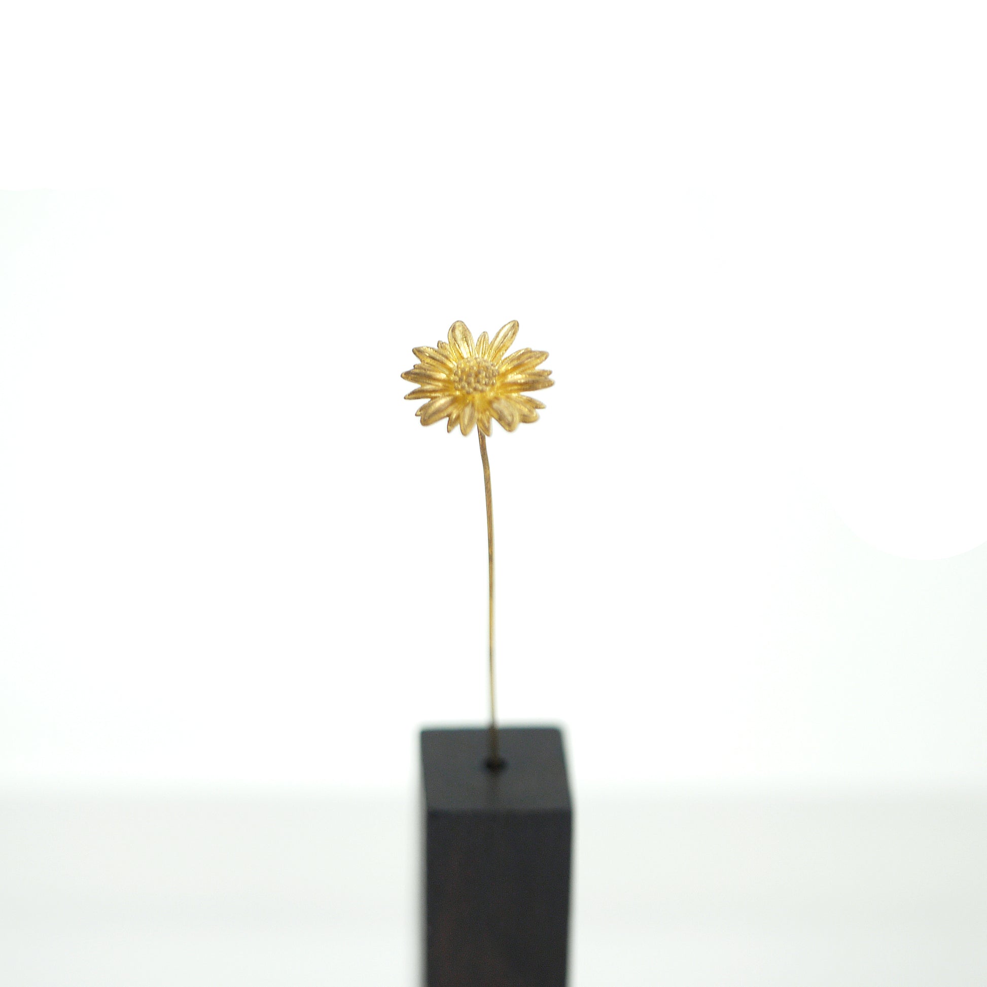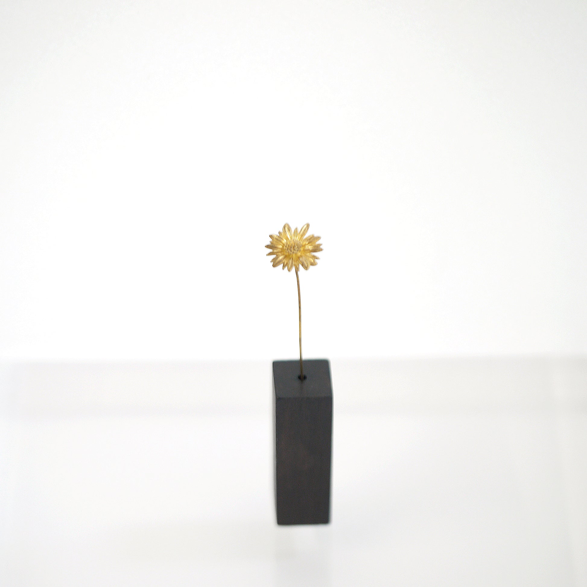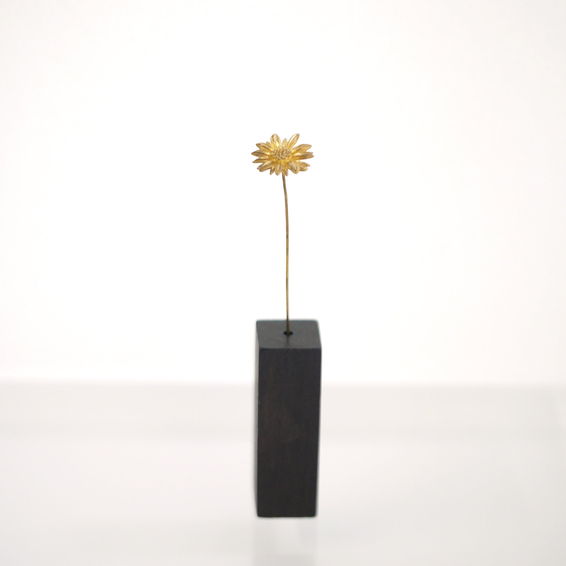 秋を象徴する花、コスモス。その可憐な姿を真鍮で繊細に表現した一輪挿しオブジェです。花びら一枚一枚を丁寧にかたどり、真鍮ならではの温かみと、時とともに深まる風合いをお楽しみいただけます。木製花瓶との組み合わせはシンプルながらも上品で、空間にやさしい彩りを添えます。単体でも美しく、シリーズで飾れば四季を感じる小さなアートピースとして。贈り物にも最適です。