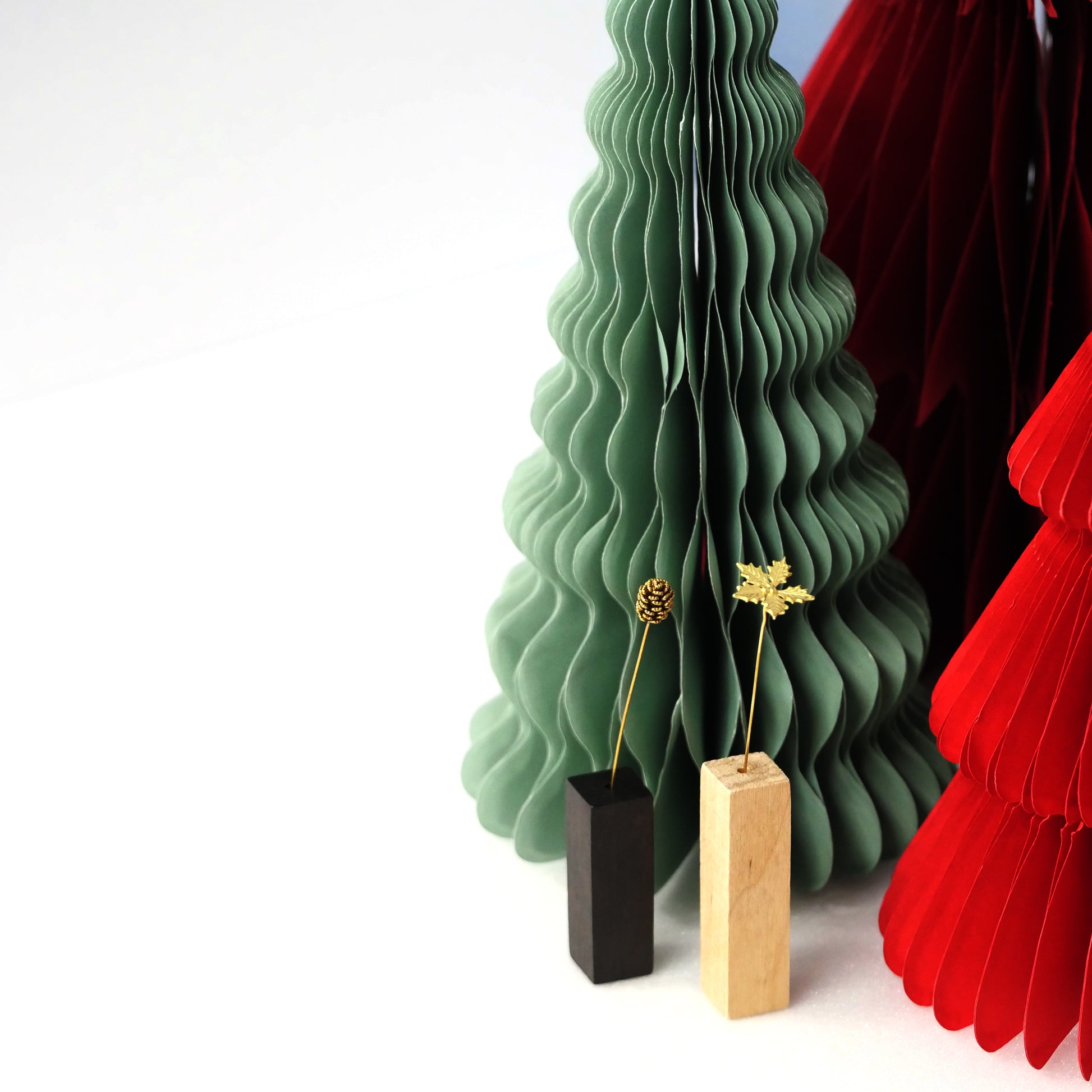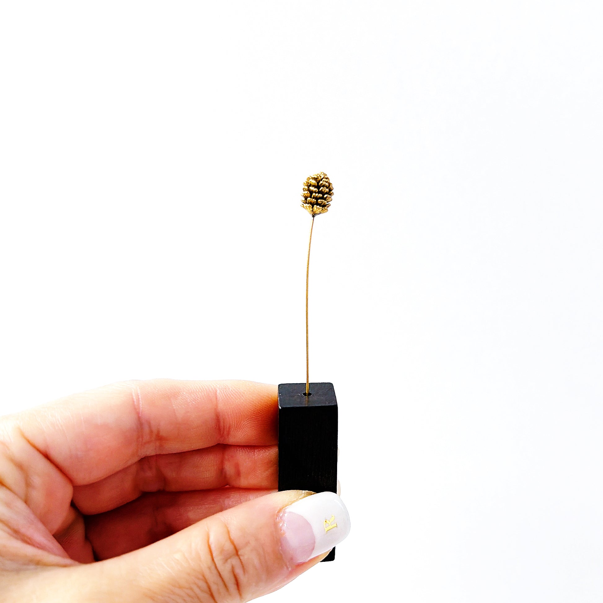 森の中で静かに佇む小さな松ぼっくりを、真鍮の繊細な表現でかたどった一輪挿しオブジェです。幾重にも重なる鱗片の立体感を忠実に再現し、経年とともに深まる真鍮ならではの風合いを楽しめます。木製の花瓶と組み合わせることで、素朴でありながら上質な存在感に。窓辺や机にそっと置くだけで、暮らしの中に森の気配を添えてくれます。 単品としても、複数を並べても絵になるデザインで、贈り物にもふさわしい一品です。
