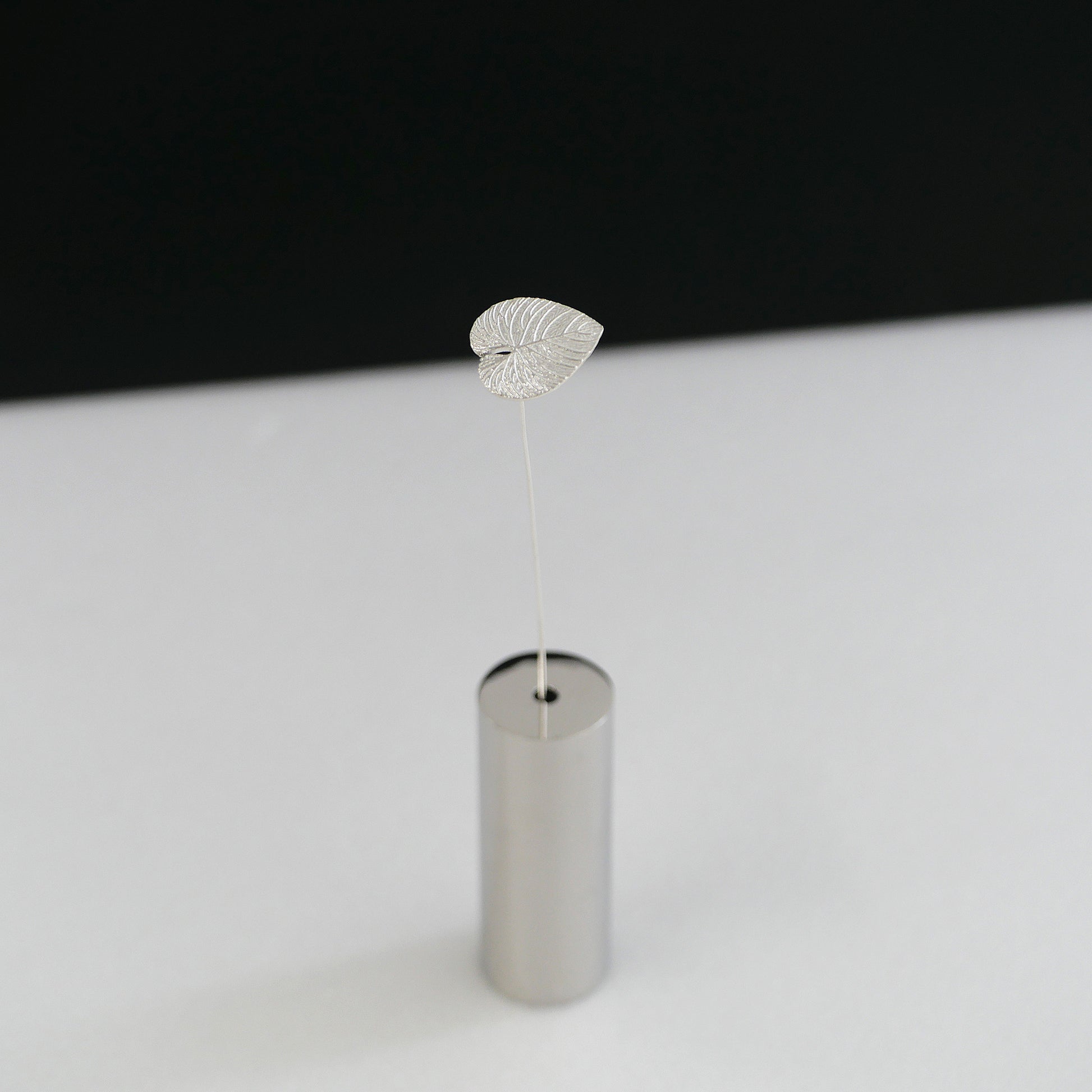 柔らかなハート形のフォルムが印象的な、シルバー925製のリーフモチーフ一輪挿し。