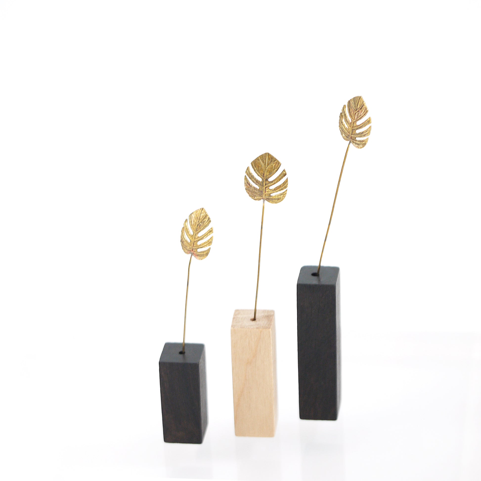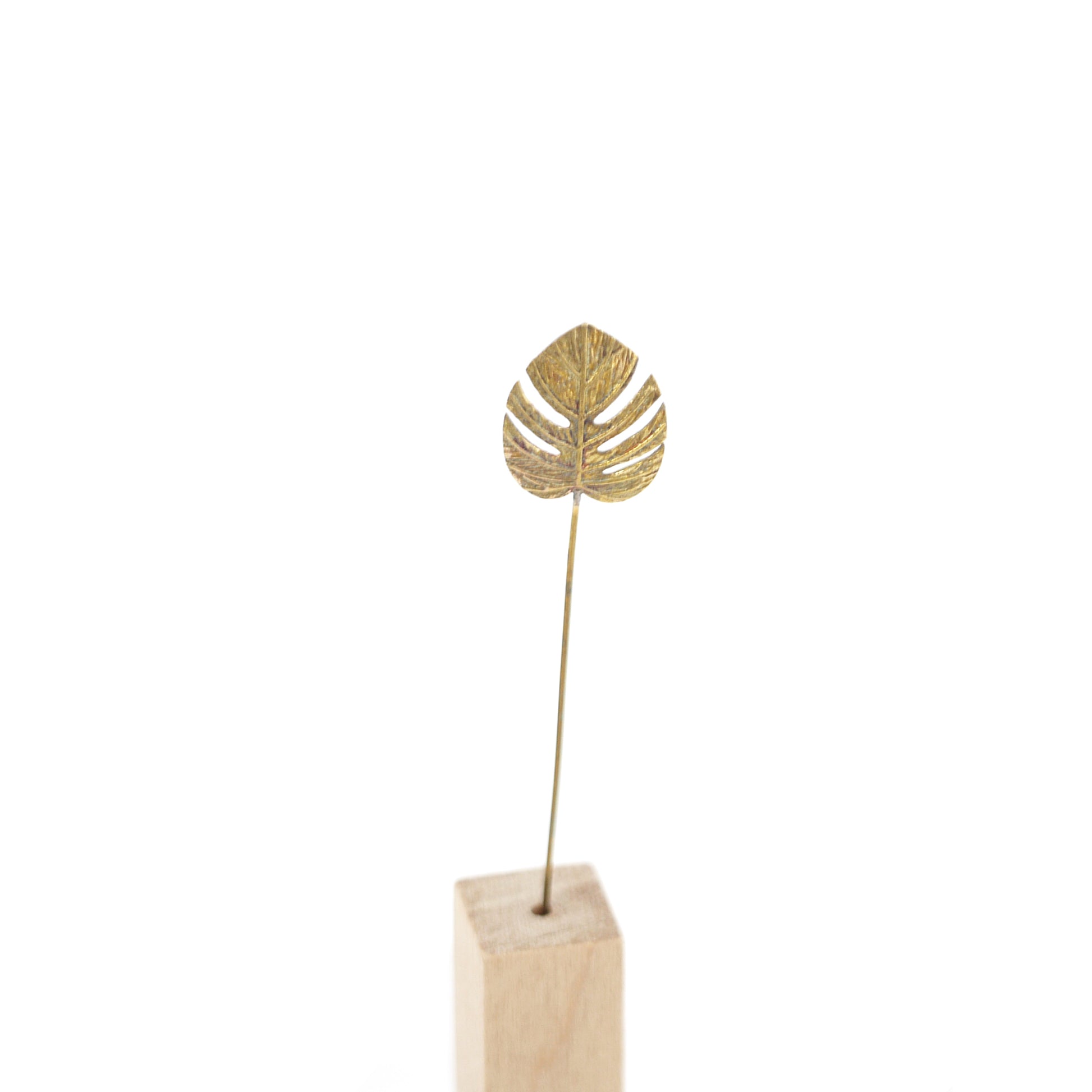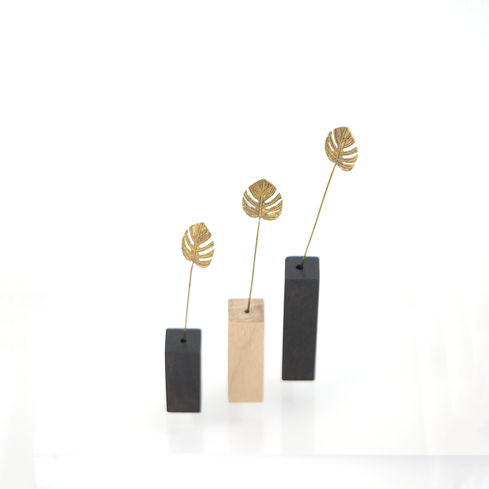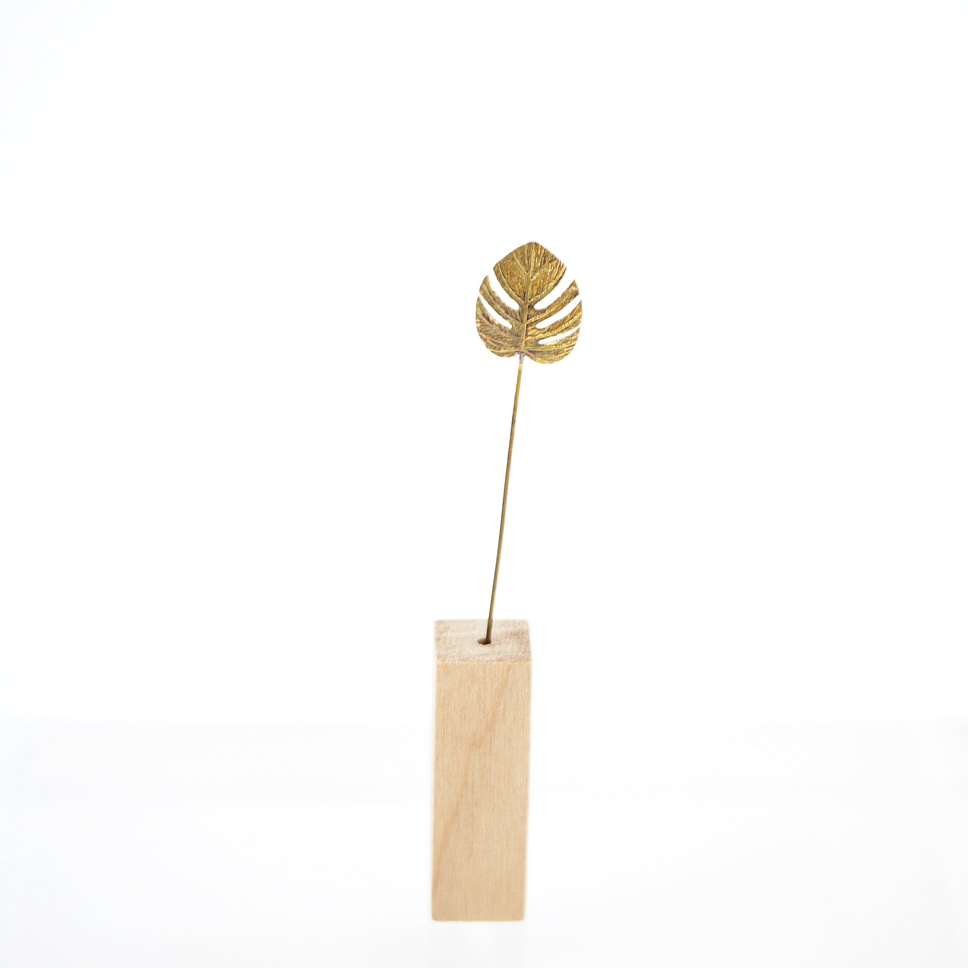 モンステラ|真鍮製一輪挿しオブジェ 木製花瓶付