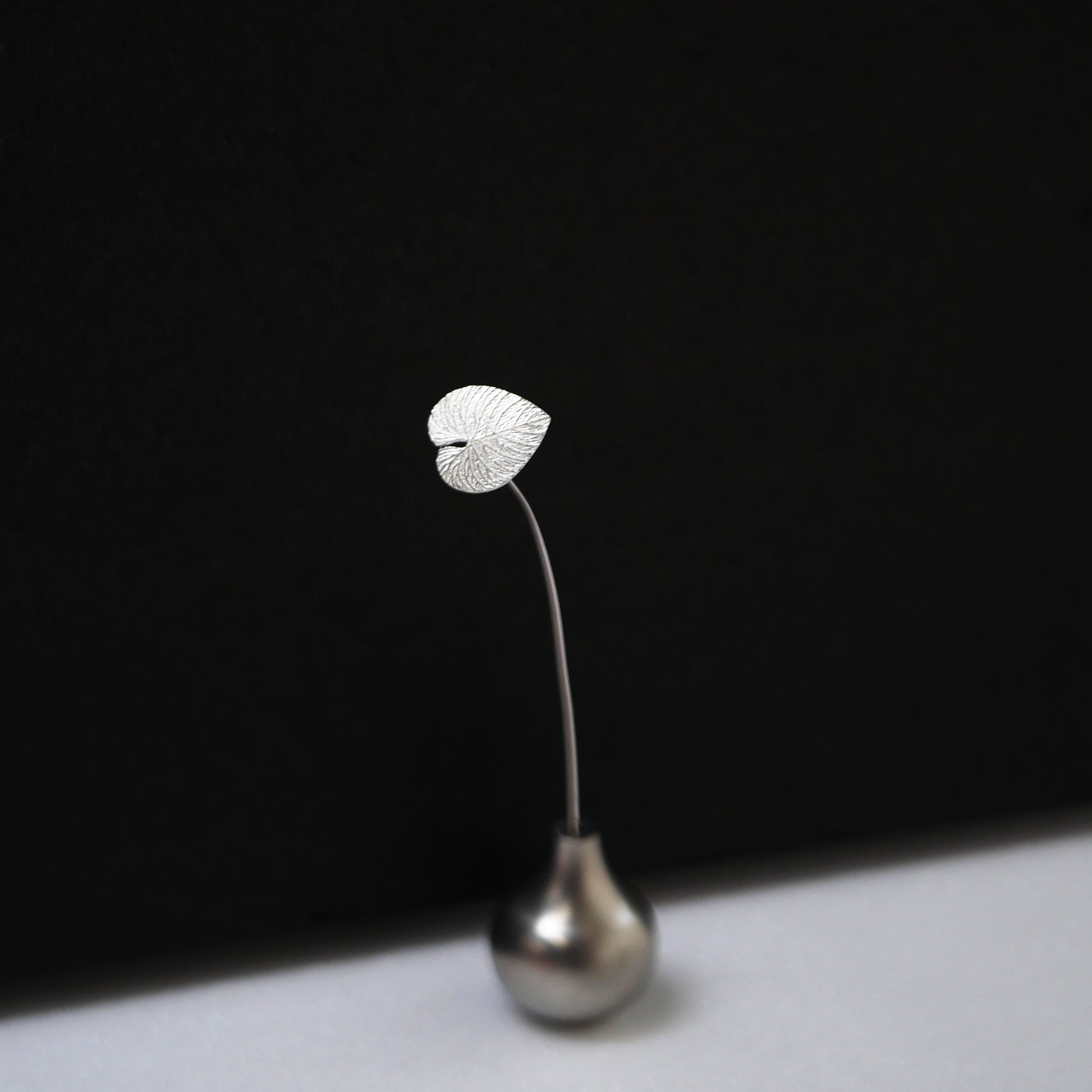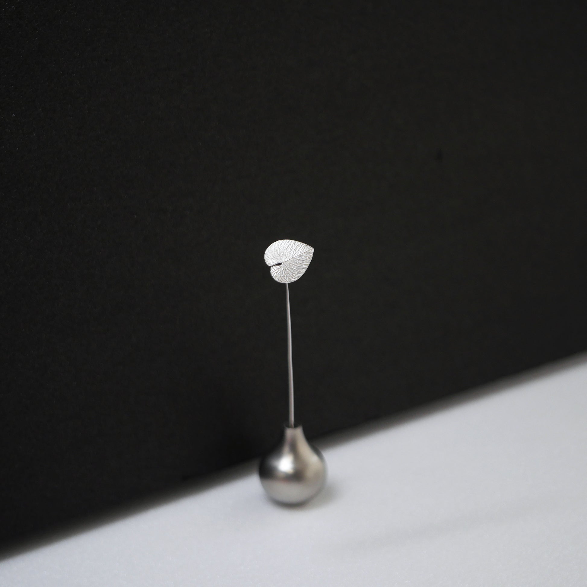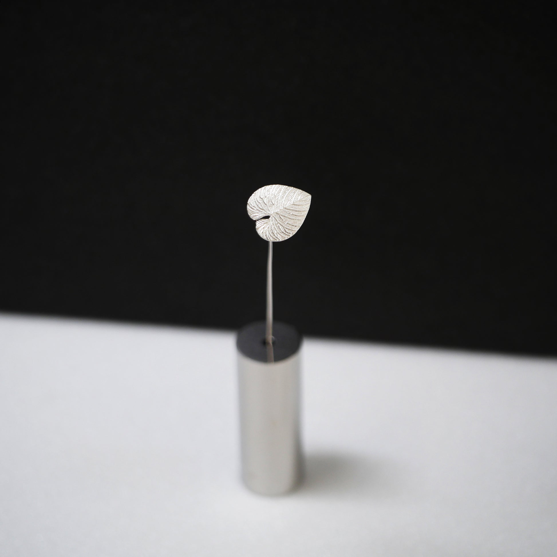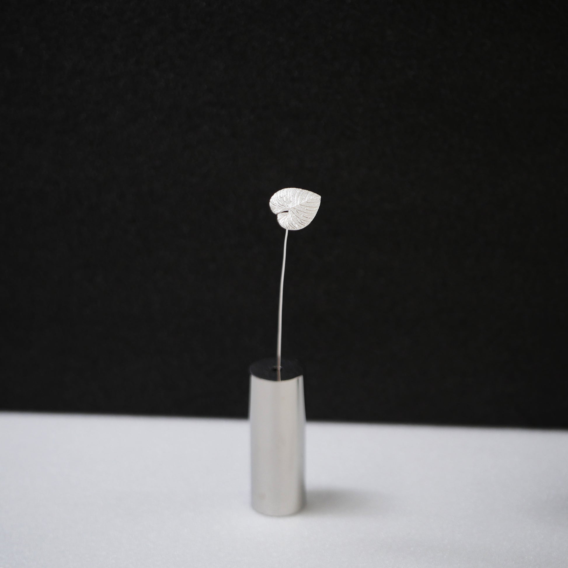 シルバー925で精緻に表現されたハート型のモンステラリーフモチーフをあしらった一輪挿し。 銀の柔らかな輝きと有機的な葉脈の美しさが、花の魅力を引き立てます。 小さなオブジェとして空間に洗練されたアクセントを添え、大切な方への贈り物にも最適です。