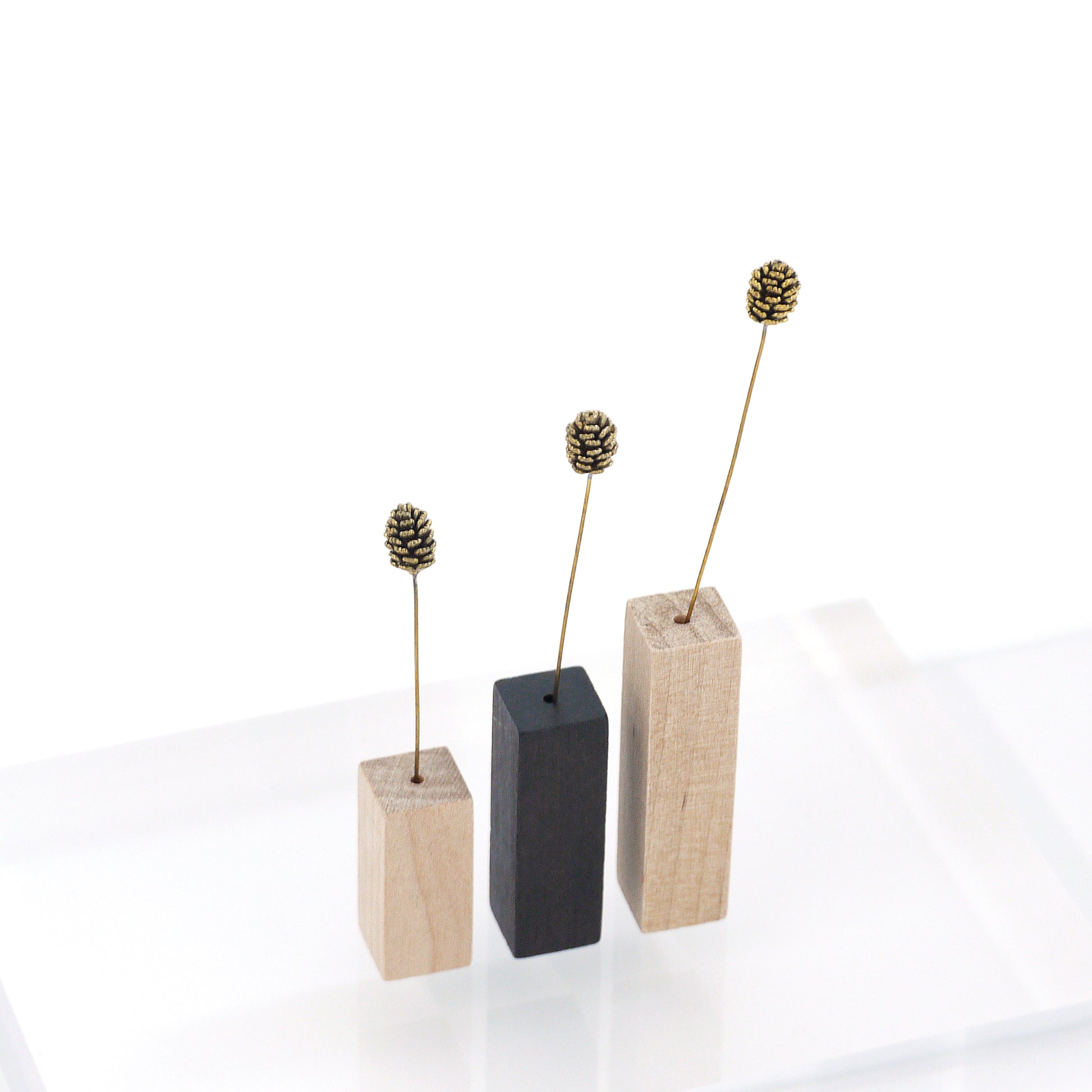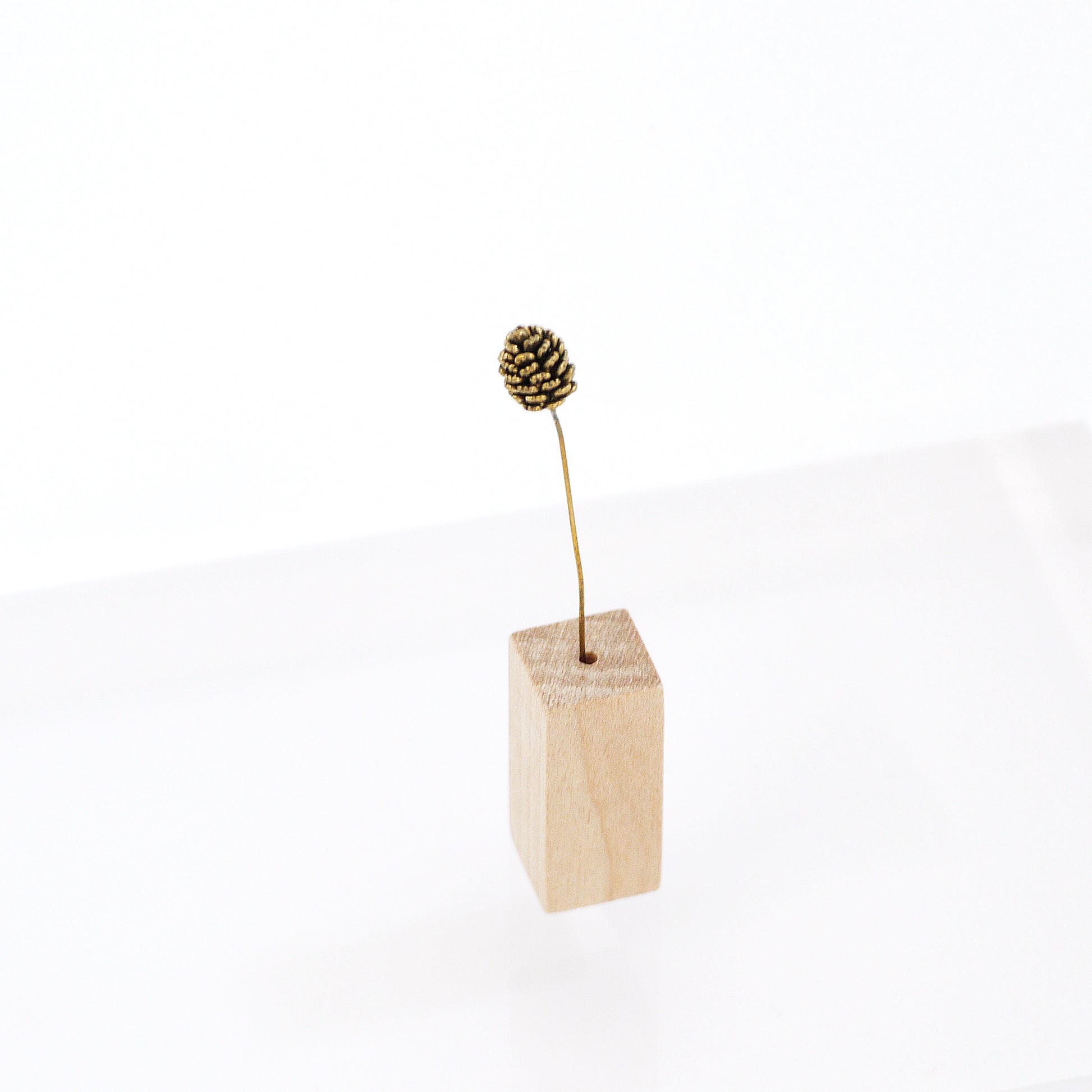 松ぼっくり|真鍮製一輪挿しオブジェ 木製花瓶付
